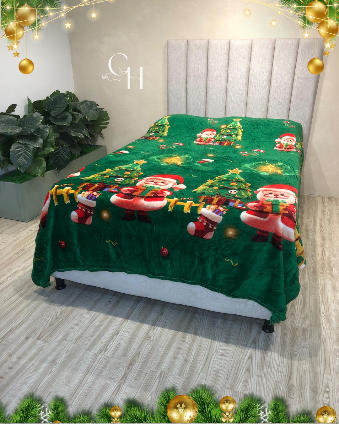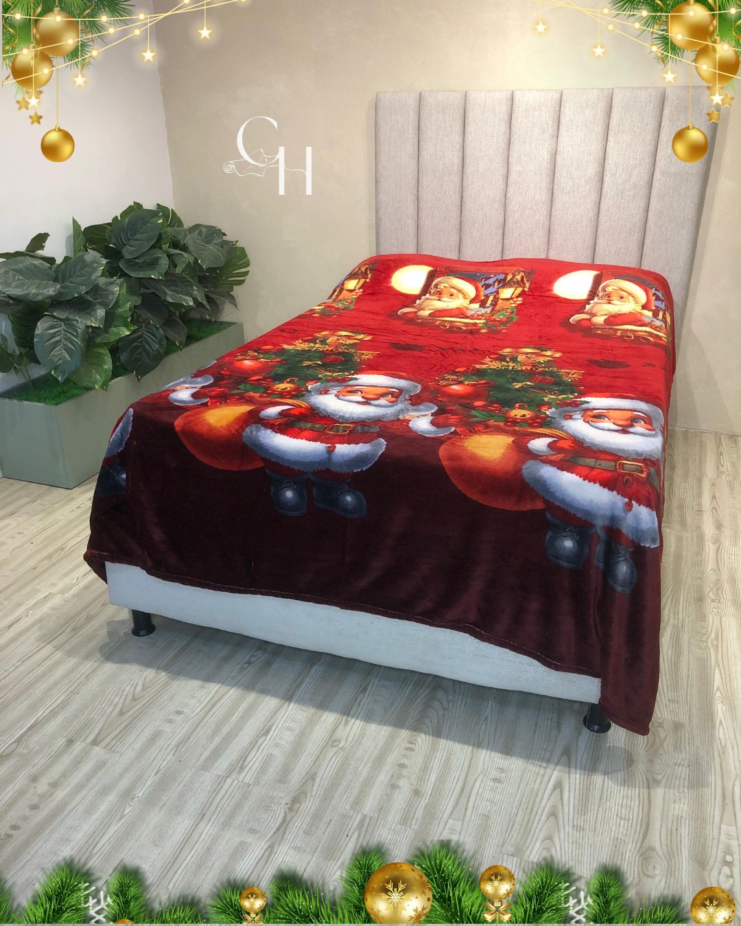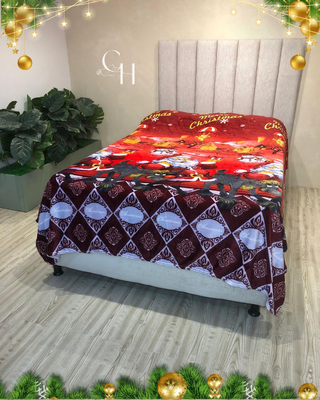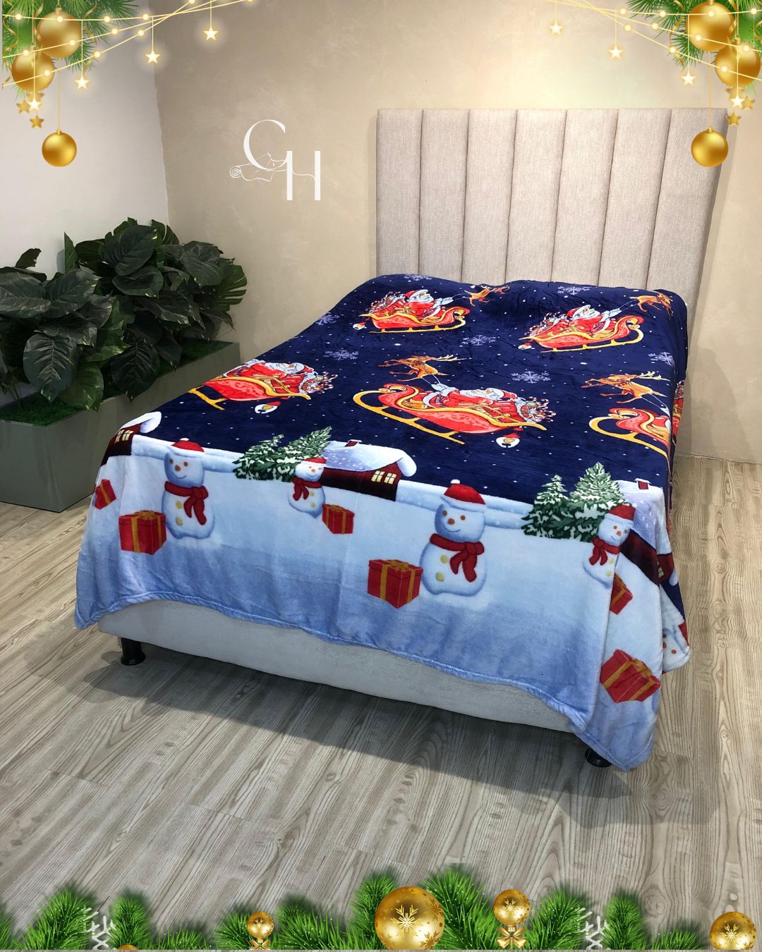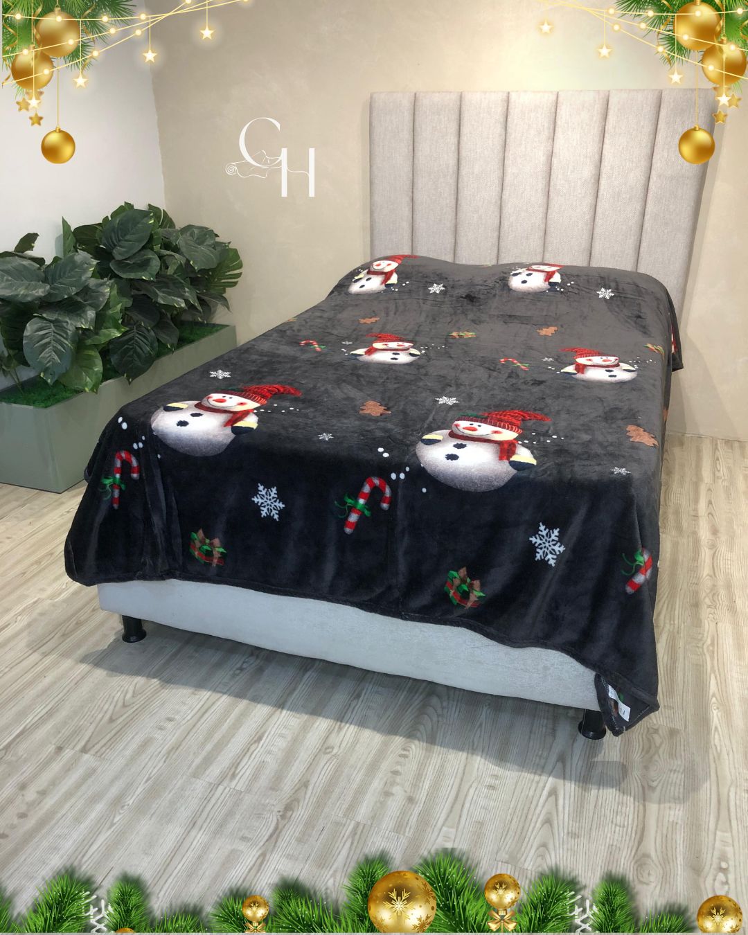 Cobijas con motivos navideños.