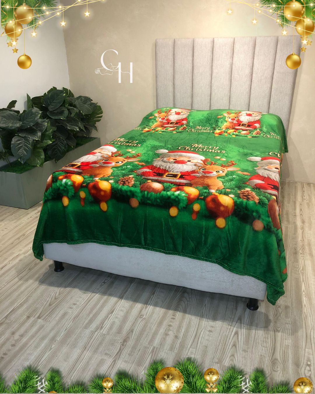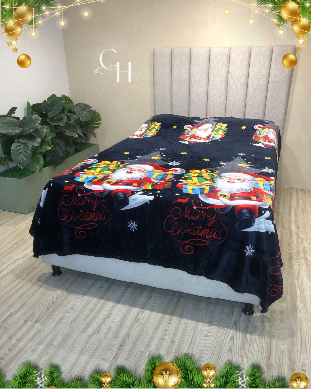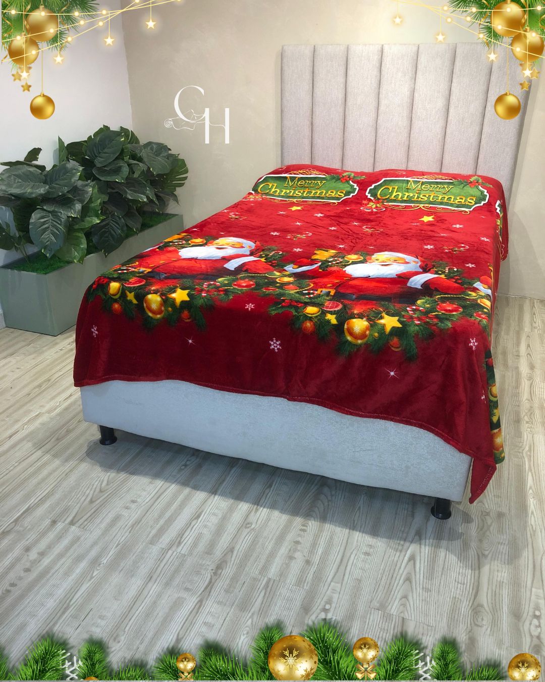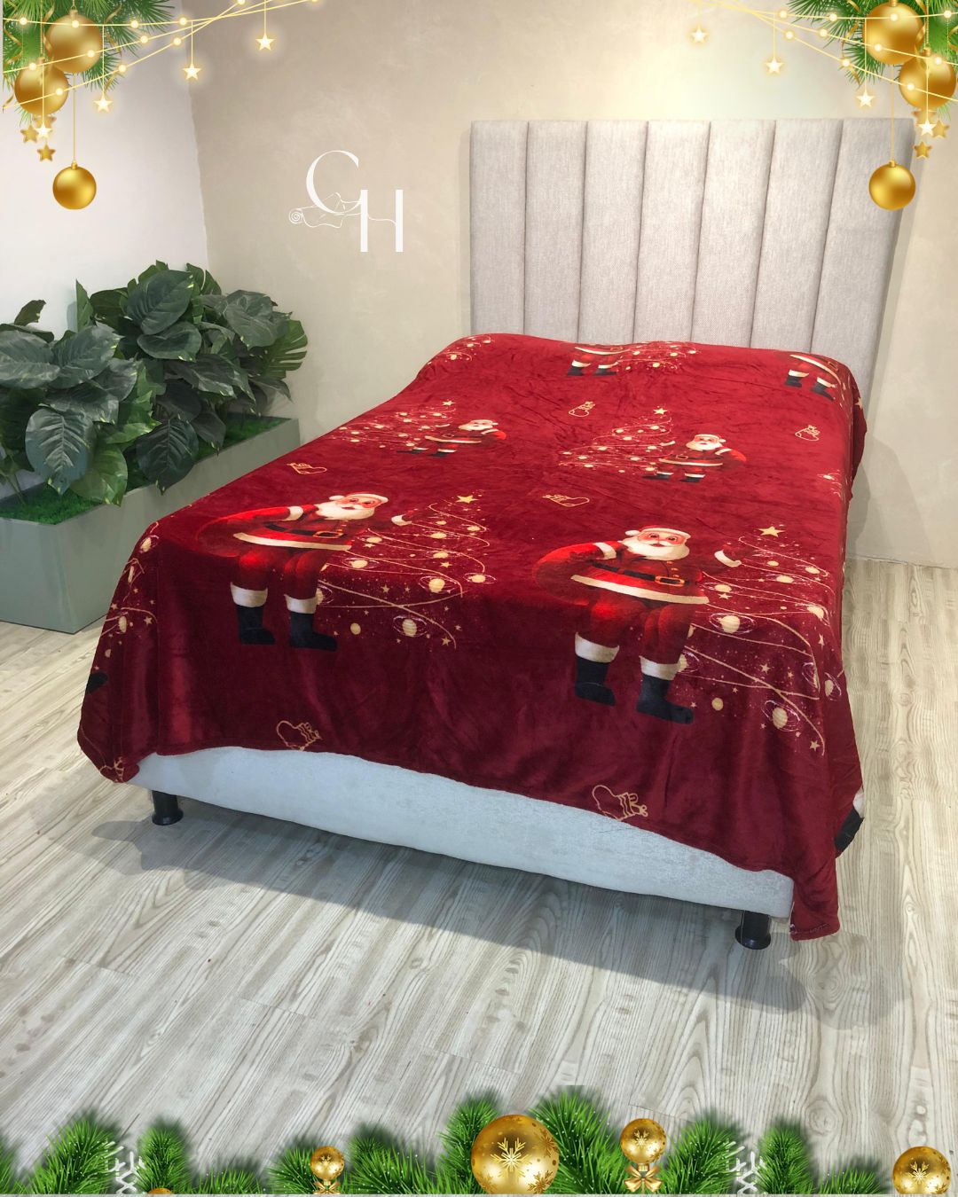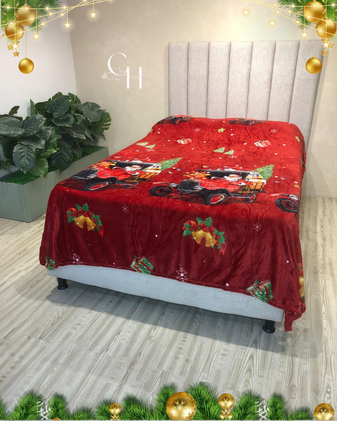 Cobijas con motivos navideños.